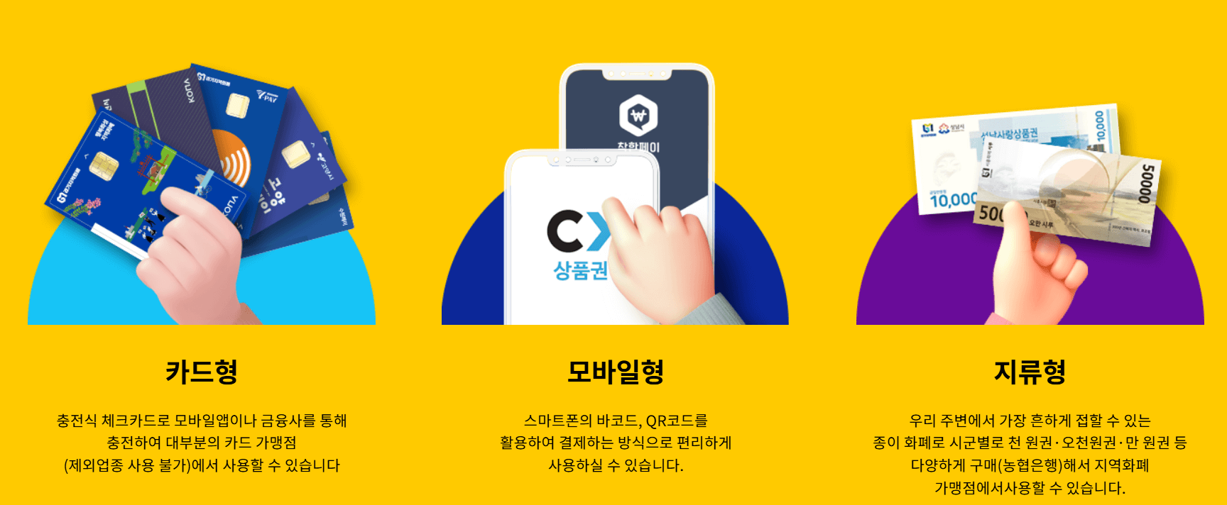 지역화폐는 화폐의 형태로 거래되기 때문에, 거래의 방식이 비교적 자유롭습니다.