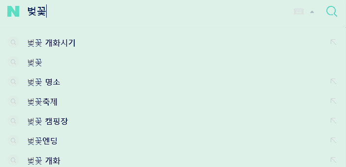 벚꽃으로 검색을 시작하면 제일 먼저 나오는 키워드가 벚꽃 개화시기네요.