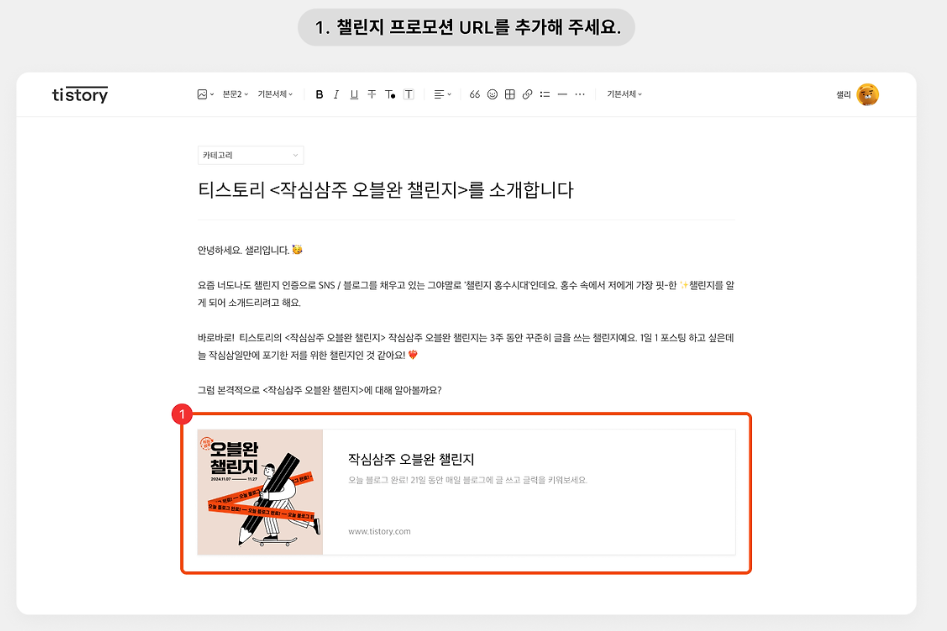 여려 분들도 함께 #오블완 챌린지 참여하시어 좋은 기회 잡아보세요!