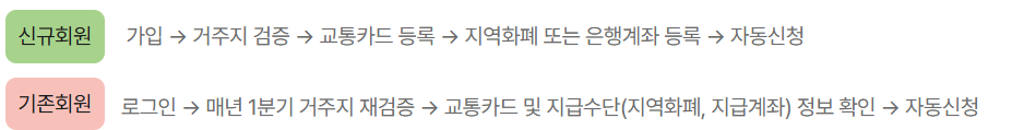 ○ 경기도에 거주하는 만 6~18세 어린이와 청소년 중 본인명의의 교통카드를 이용한 수도권 대중교통(경기, 서울, 인천 버스 및 지하철) 실 사용액을 연 24만 원(분기별 6만 원) 한도로 본인이 등록한 지급수단으로 환급 혹은 또타 앱을 통해 공유자전거 결제 시 1천 원 즉시 할인