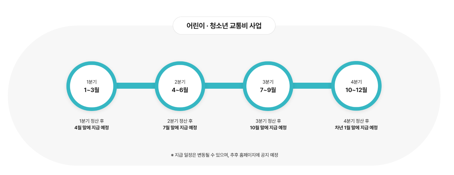 타 기관 교통비 지원사업과 중복 불가(경기도 어린이 청소년 교통비 지원 포털을 통하여 수시 공지)
